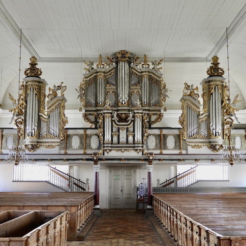 Lövstabruk’s present-day appearance dates from its rebuilding following the Russian attack of 1719. This is an urban environment of straight streets, workers homes, some monumental buildings in the centre and a Manor House. The church was build in 1725 as a church for the employees at the iron works. They were walloons and callvinists and the church was build to serve the callvinists services. That means that the church is bare except for the magnificent pulpit, altarpiece and organ. The church was private owned until about 1930.