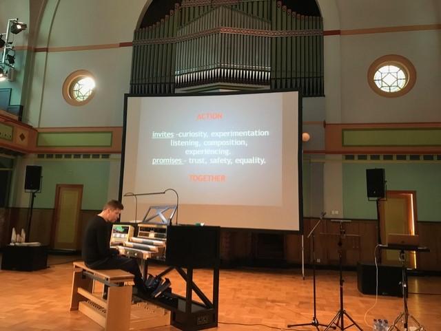 een uitvoering is (wat is klank meer dan trillende lucht?); om "voltooid" te worden, dient een muziekwerk ook beluisterd te worden. De luisteraar is niet alleen aanwezig, maar kan zelfs niet worden gemist. Hij is "performatief" betrokken, is dus onderdeel van de uitvoering en als zodanig betrokken in het artistieke proces. De probleemstelling is daarmee helder geformuleerd, want: wat als het publiek voor het orgel het laat afweten? Hoe betrekken we het publiek bij dit proces, in een tijd dat muziek meer en meer op consumptie en entertainment gericht lijkt? Een perfecte brug naar de presentatie van de eerste spreker.
